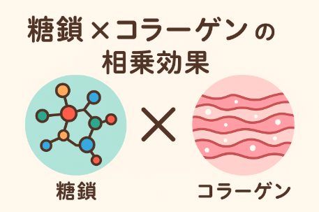 実は、この糖鎖とコラーゲンを組み合わせることで、単独で摂取するよりも遥かに高い効果が期待できることが、近年の研究で明らかになってきています。